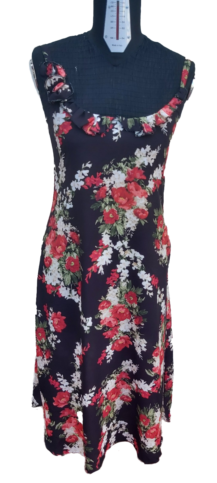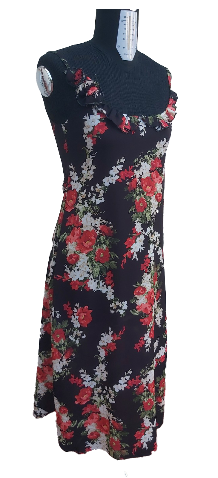 Rochie de vară model Ana, mărimea 34, perfectă pentru zilele calde de vară. Această rochie delicată are un design floral cu un fundal de un albastru închis elegant, pe care se remarcă flori roșii vibrante și frunze verzi și albe, creând un contrast plăcut și plin de viață. Materialul ușor și fluid asigură confortul pe tot parcursul zilei, iar croiala modernă se potrivește perfect siluetei, oferind un look feminin și rafinat. Ideală pentru o plimbare de vară sau un eveniment casual, această rochie este o alegere inspirată pentru un stil fresh și elegant.
